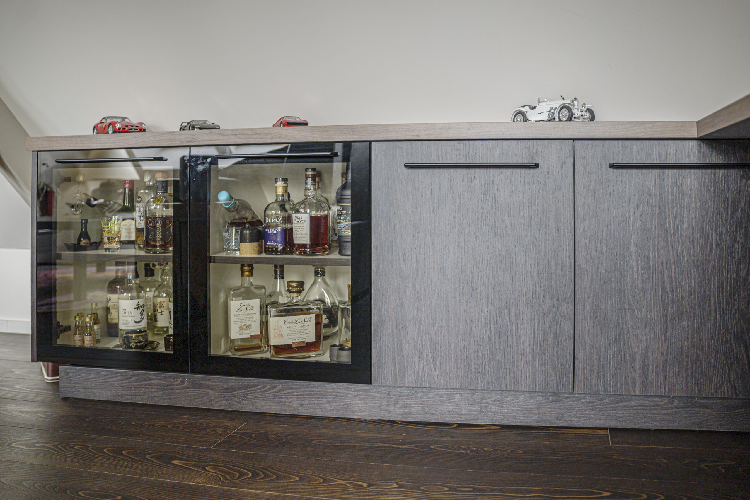 Par ailleurs, le bar intégré permet de stocker et d’exposer verres et bouteilles, ajoutant une dimension sociale à l’espace. Enfin, les étagères vitrées du bar apportent une touche de modernité et permettent de mettre en valeur vos plus belles bouteilles et verres.