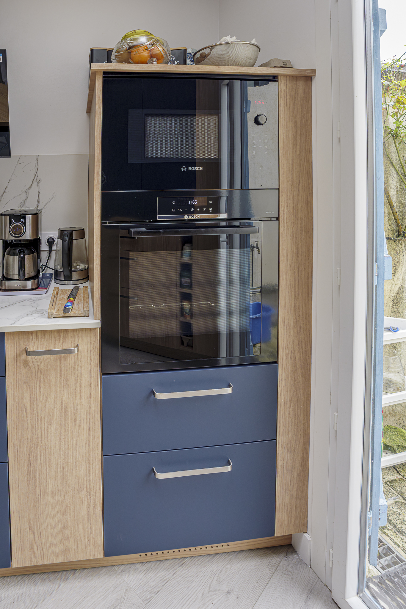 Cuisine sur mesure moderne bois et bleu