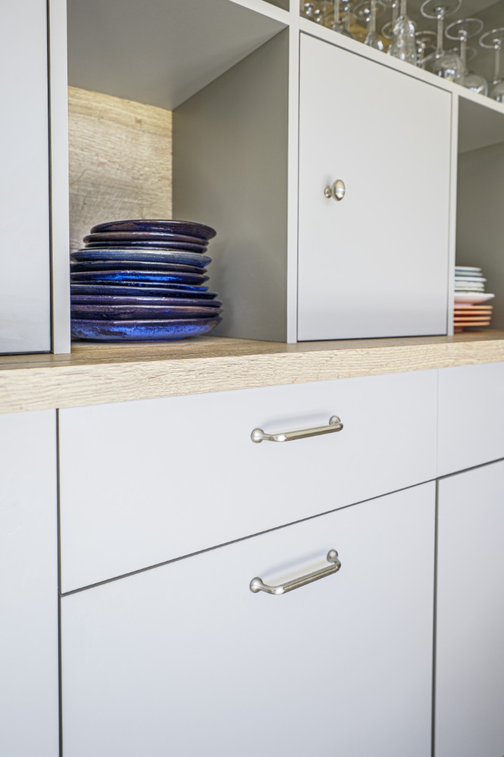 Conçue dans un esprit de fonctionnalité et de design soigné, cette desserte de cuisine sur mesure signée Profil Aménagement illustre parfaitement notre savoir-faire en agencement intérieur. Ce meuble haut de gamme s’intègre avec élégance dans une cuisine contemporaine tout en offrant des solutions de rangement adaptées aux besoins du quotidien.