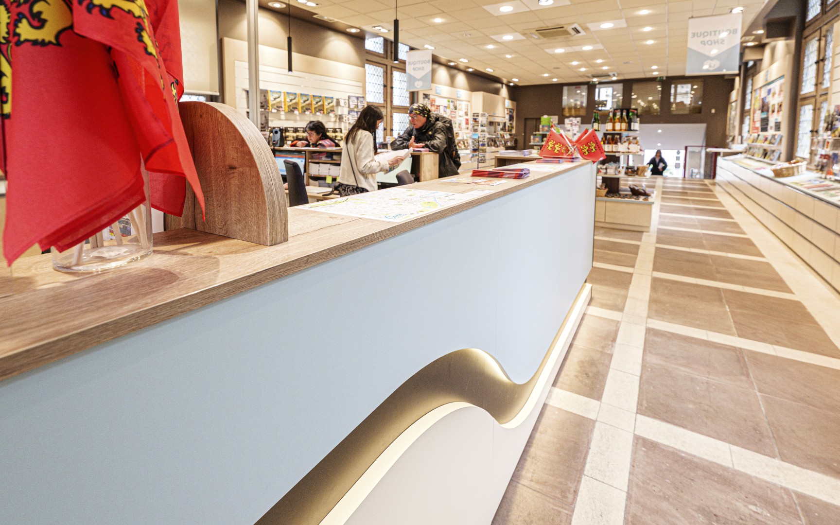Profil Aménagement a récemment conçu un meuble d’accueil sur mesure pour l’Office de Tourisme de Caen, alliant fonctionnalité, esthétisme et adaptation parfaite aux besoins des agents d’accueil comme des visiteurs.