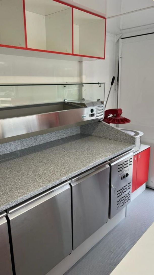 Les photos du projet montrent un food truck à l’allure moderne et fonctionnelle, où chaque élément a été soigneusement pensé pour faciliter le travail du pizzaïolo. Les espaces de cuisson et de préparation sont optimisés pour offrir un confort d’utilisation tout en respectant les normes sanitaires. Le choix des matériaux, tels que l’inox pour les surfaces de travail et le bois pour certains éléments décoratifs, apporte une touche professionnelle et chaleureuse.